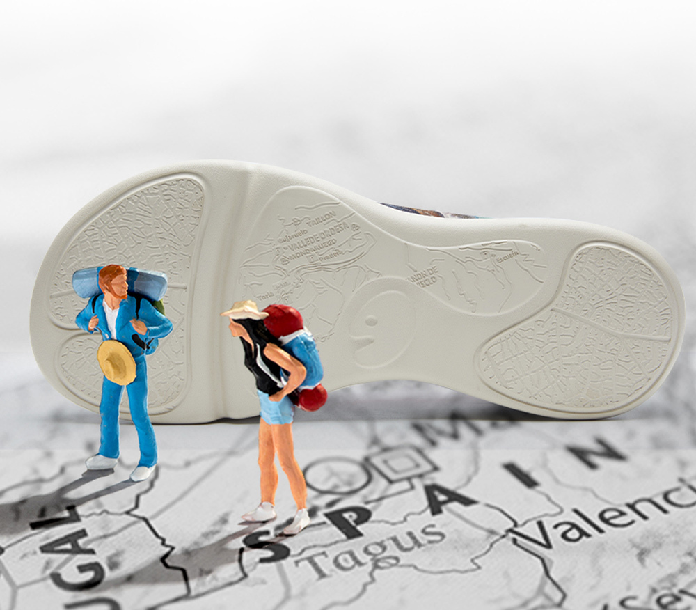 仿腳型鞋型設計 | 流線型緩震EVA中底 | 飛織鞋面 | 鞋側鬆緊帶 | 柔軟、緩震彈性按摩鞋墊 | 奧德薩地形鞋底
