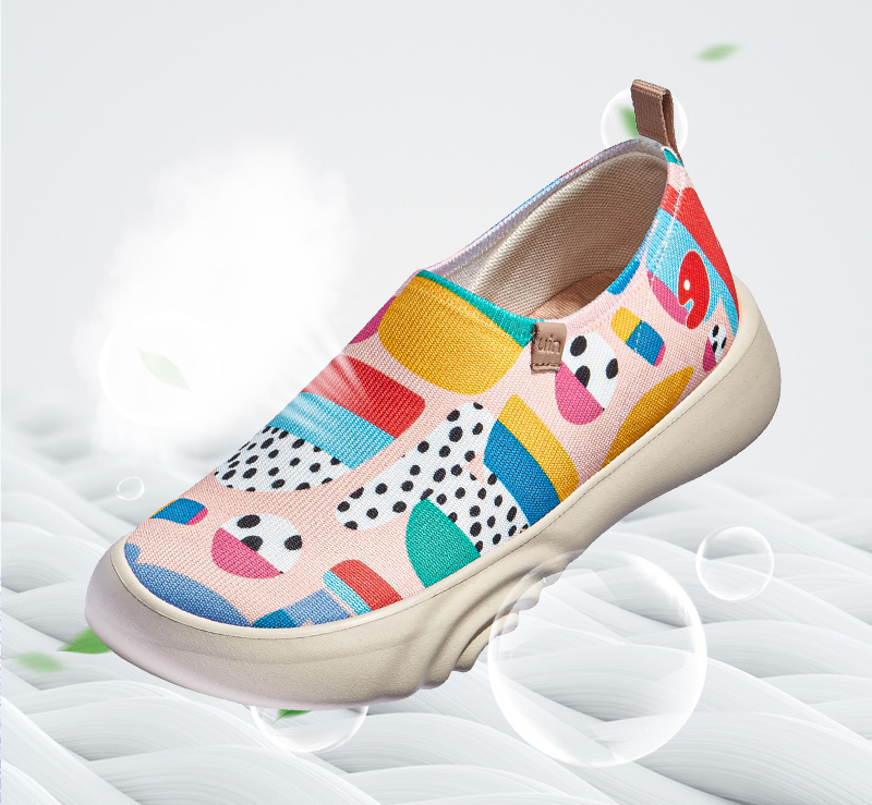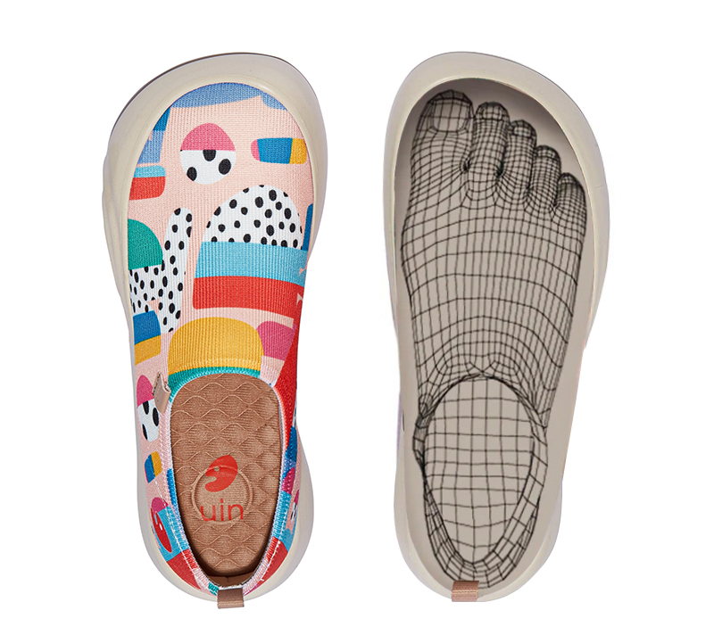 原創仿腳型鞋型設計 | 舒適寬鞋頭 | 飛織鞋面,柔軟透氣 | 全新高科技鞋墊 | 水波紋結構EVA中底側面 | 德尼亞地形鞋底